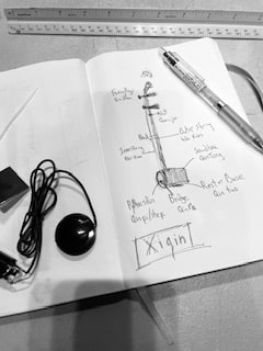 Oak, contact piezo mic, machine heads, guitar strings, violin bow